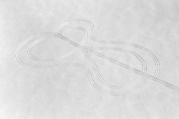 You can make some quite artistic patterns on snow untouched by human feet! Do groundlings coming across these designs wonder how they can start and end in thin air?