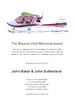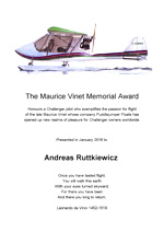 The 2016 Maurice Vinet Memorial Award was given to Andreas Ruttkiewicz from Vancouver Island, BC.