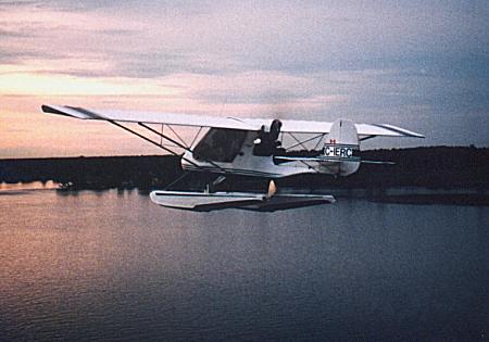 Norm operates his Challenger on both skis and amphibious floats. The picture above is from the summer of 2000 when he flew in the Challenger Owners Association Odyssey to the Saguenay Fjord.